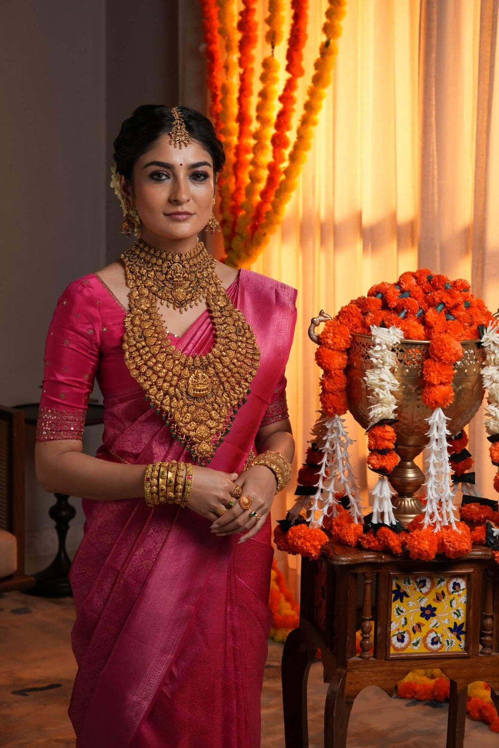 Elegant Double-Layer Gold Bead Chain with Floral Pendant